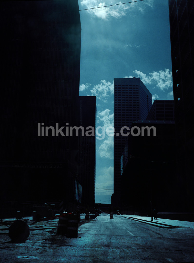 city, metropolitan, urban, rise, city, concrete, asphalt, street, cloud, sky, backlight, silhouette, contrast, traffic, roadworks, blue