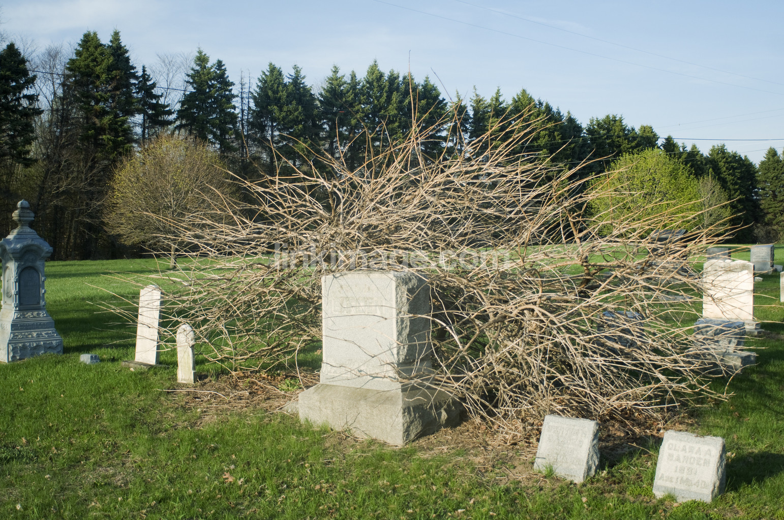 - Headstone and shrubbery