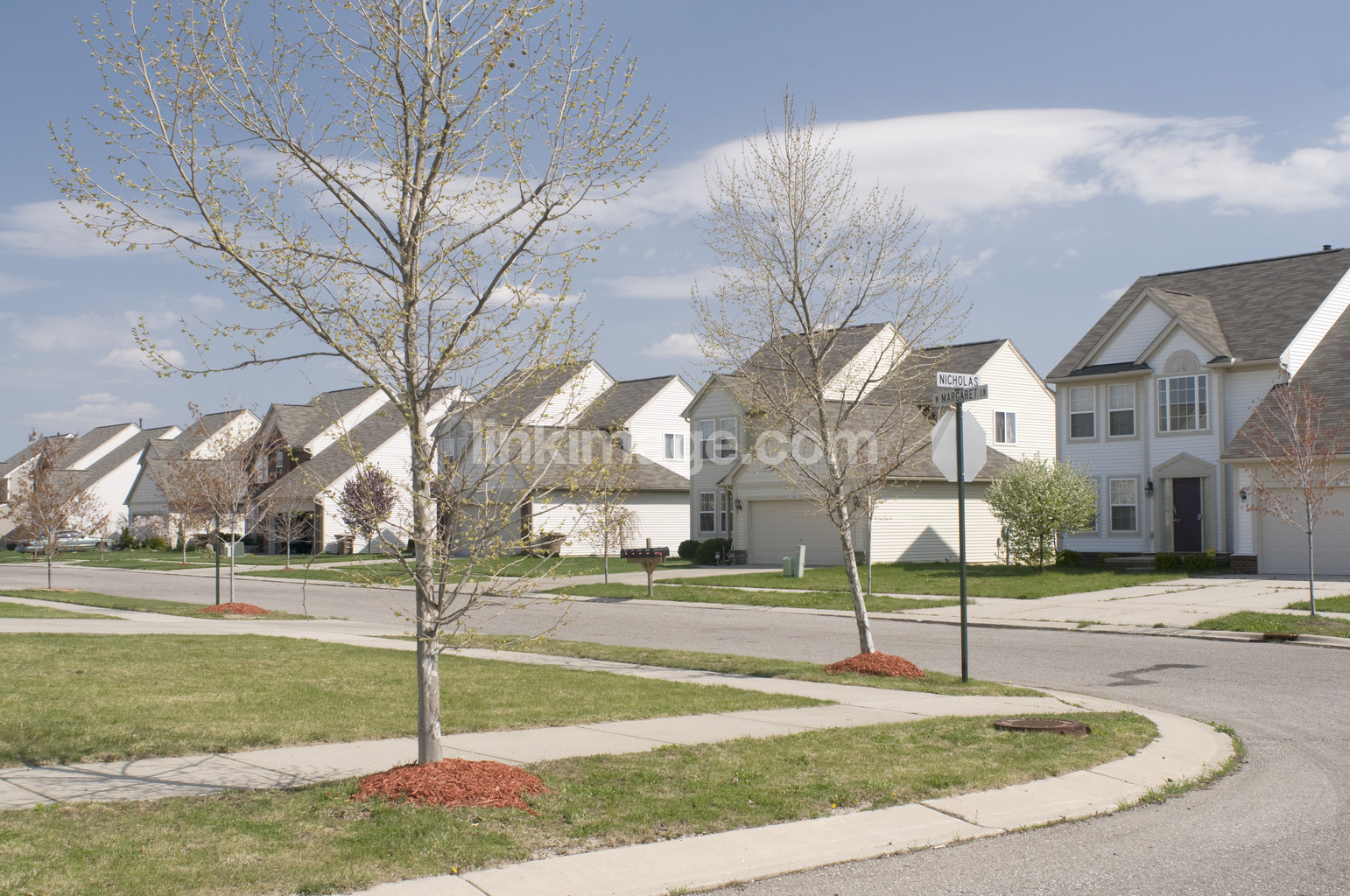 - small town, suburb, urban, villa, home, housing, townhouse, street, driveway, lawn, sky, summer, fate, pavement, residential area, new, new building, asphalt, tree