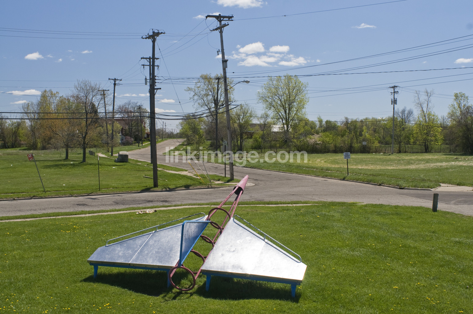 - kindergarten, playground, children, summer, park, grass, lawn, climb, scaffold, rocket, space rocket, fly, trip, housing, aircraft, street, road, small town, power pole, lines