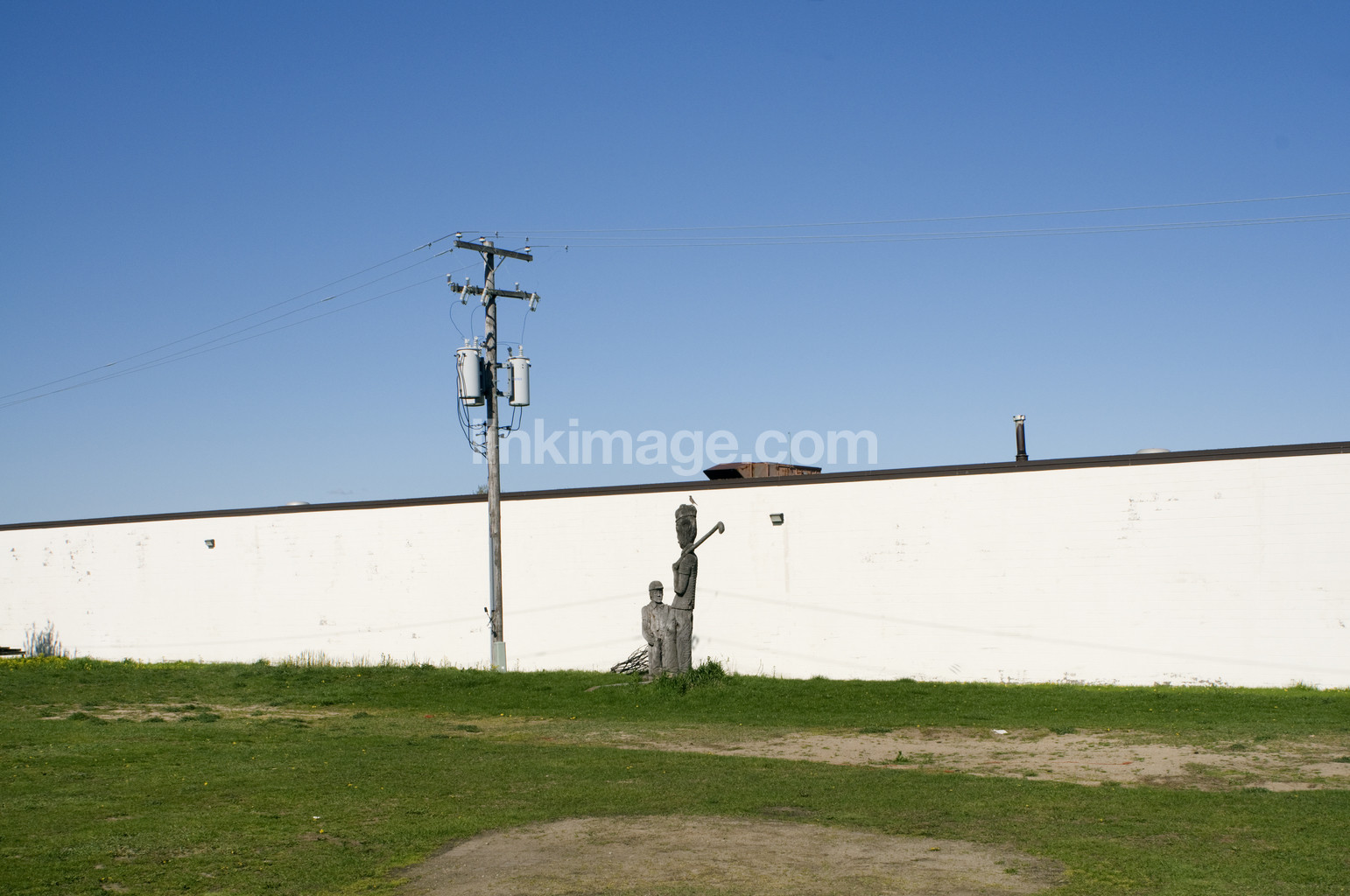 wall, sculpture, statue, grass, lawn, el, electric cable, energy, force, post, sky