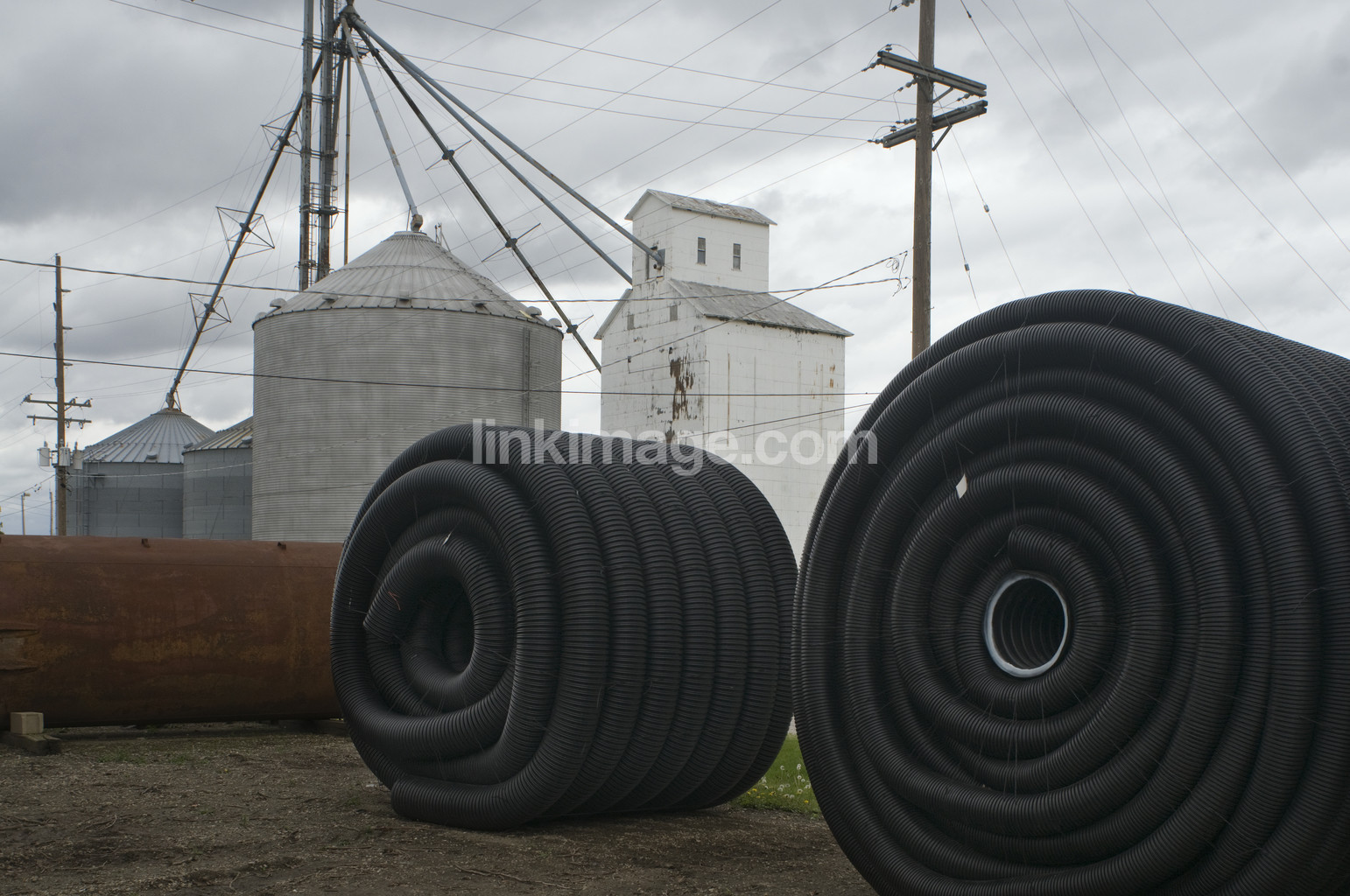 - tube, drainage, rolled, rolls, buildings, silo, silos, poles, electric lines