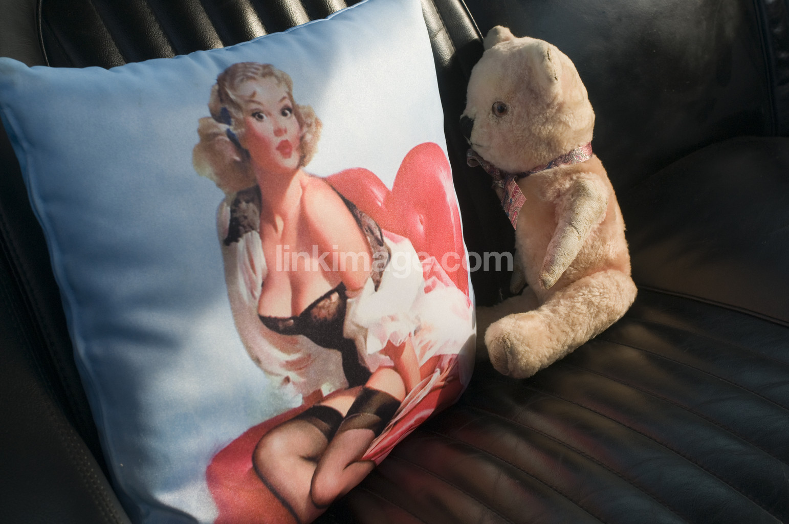 - cushion, teddy, image, pin-up girl, car seat, inside