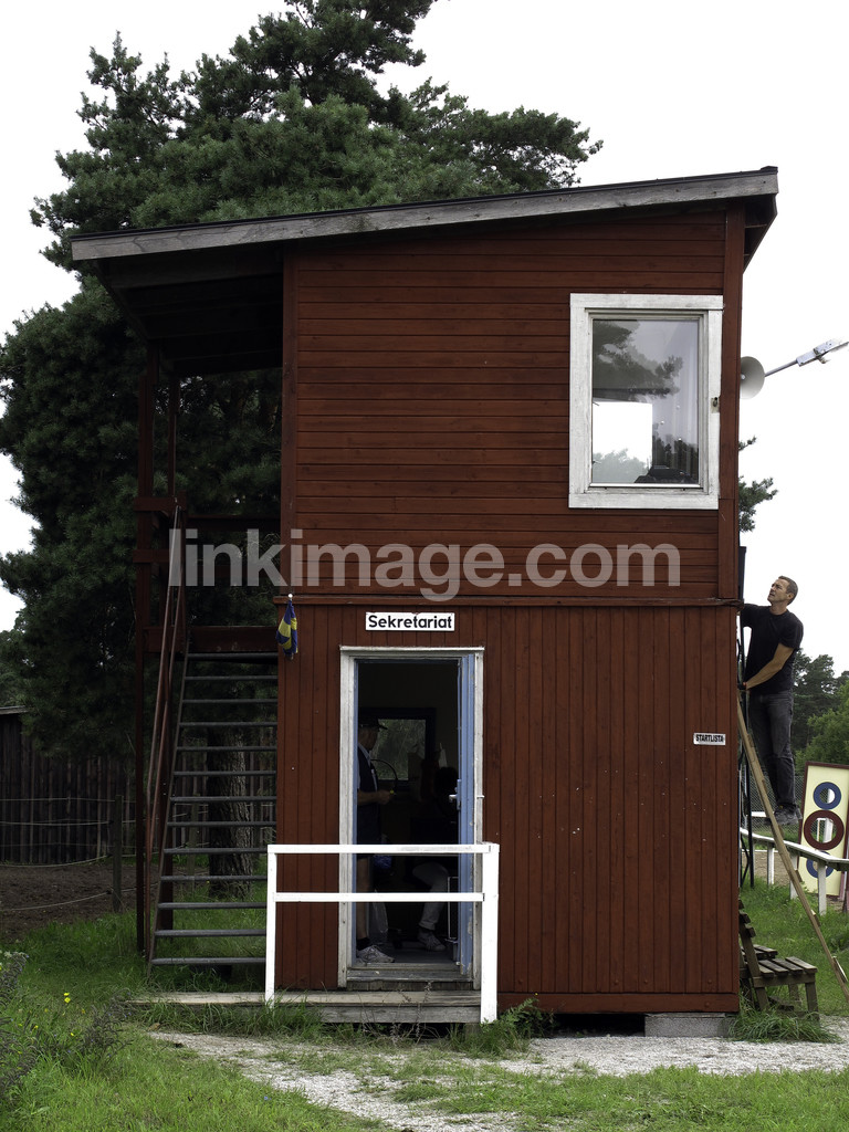 - judgments tower, equestrian competition, compete, secretariat, architecture, falun red, red, cottage, staircase, ladder, male, climb