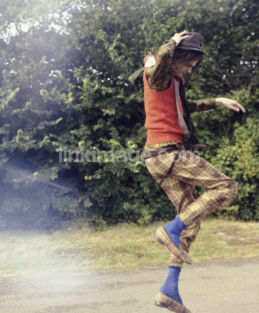 - skipping, teen, hat, longhaired, male, guy, dance, play, make trouble, jump, movement, speed