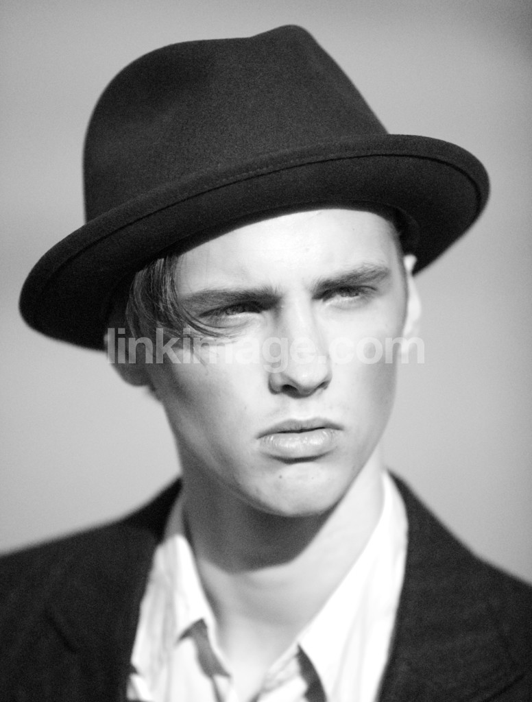 - male, teen, hat, sun, peers, shirt, bangs, guy, portrait