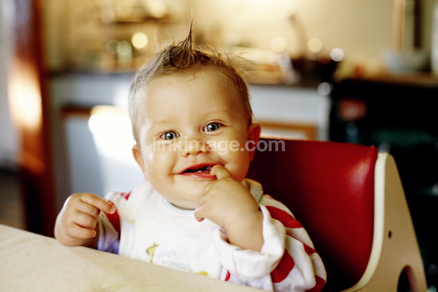- children, baby, summer, gaze, girl, face, mouth, eye, happy, tooth, kitchen, eat, food, dining table, play, hair, bib, hands