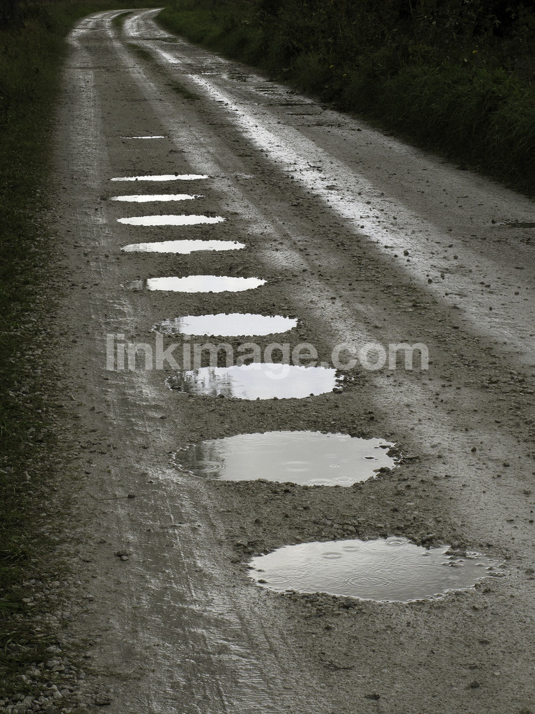 gravel road, road, water, puddles, nine, rain, humid, moisture, rained, wet, fall, storm