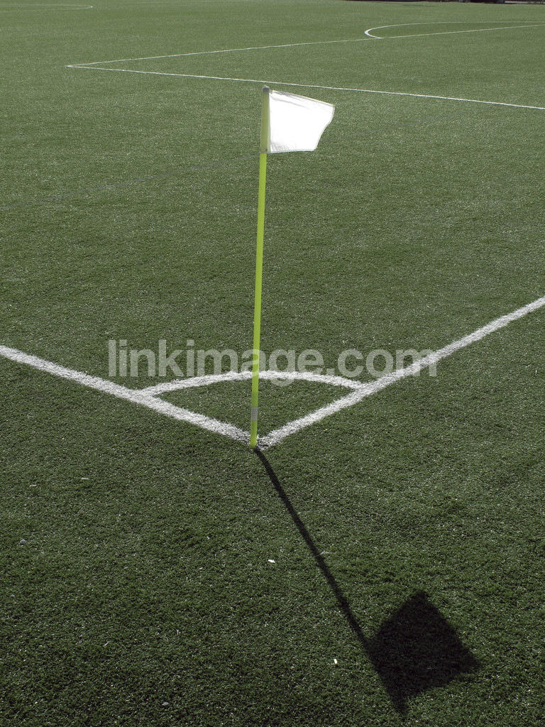 - football, soccer, corner, corner flag, flag, wind, blown, lawn, plastic, plastic lawn, green, greens, shadow, ball games, sports