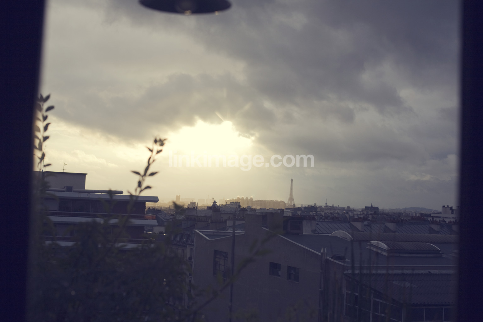 - eiffel tower, backlight, sunset, rain, foreground, shadow, cloud, plants, by, window, dusk, view, views