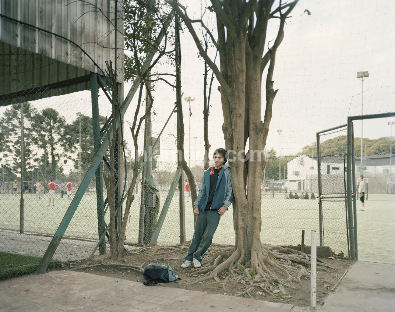 - portrait, boy, male, football, plane, tree, fence, wait, sports, training