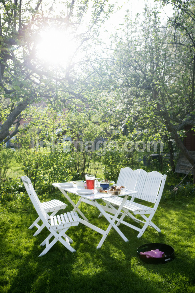 garden, spring, sun, food, dinner, table, juice, red, grass, set the table, washer, wait, outdoor, heat