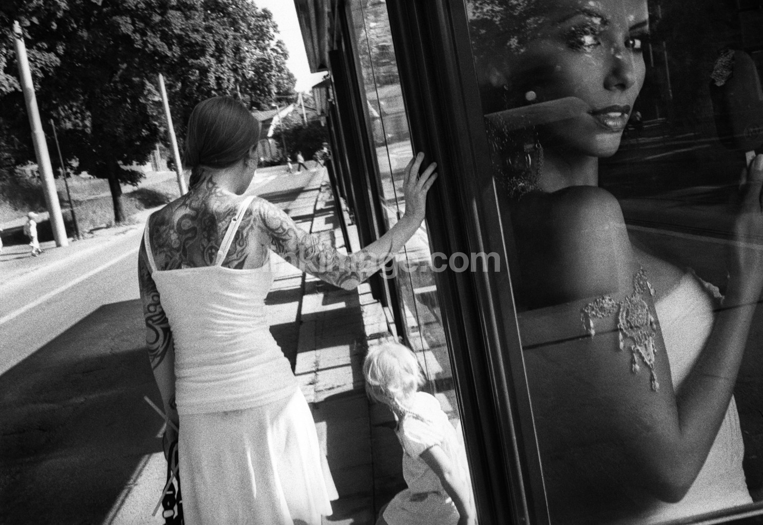 - female, girl, mother, children, family, advertising, sign, bus, bus stop, stop, tattoo, street, road, 39695