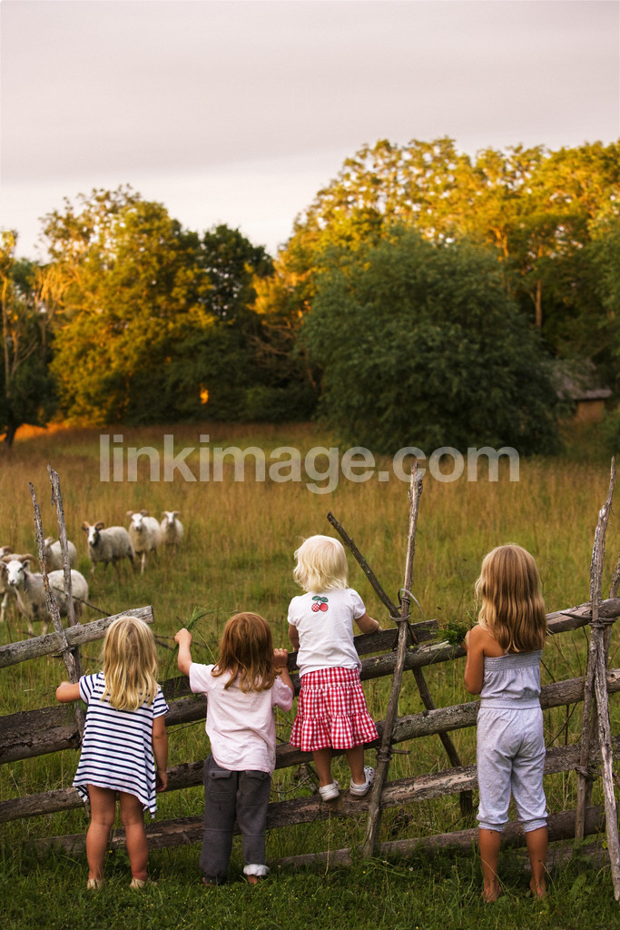children, summer, detect, food, animals, nature, evening, dusk, watch, fence, may, lamb, farmhouse