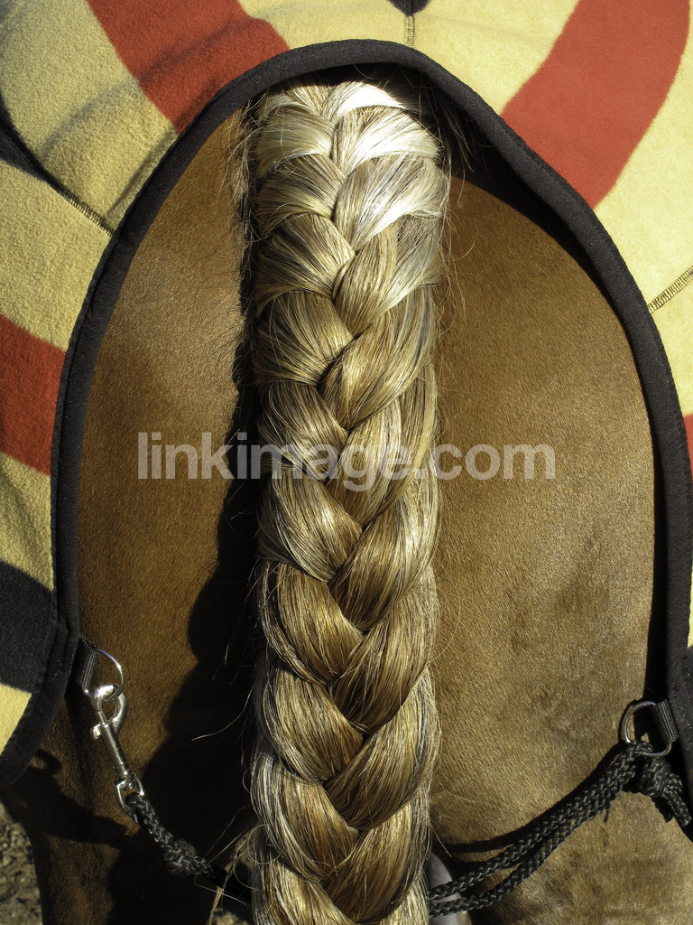 - horse, hair, hairstyle, braid, tail, pony tail, horsehair, stripe, striped, yellow, red, fashion, butt, brown, colors, equestrian, ride, riding
