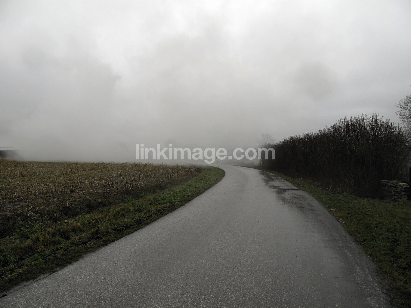 road, direction, fall, rain, weather, gray, smoke, fog, bend, form, country, country built, spot, view, go