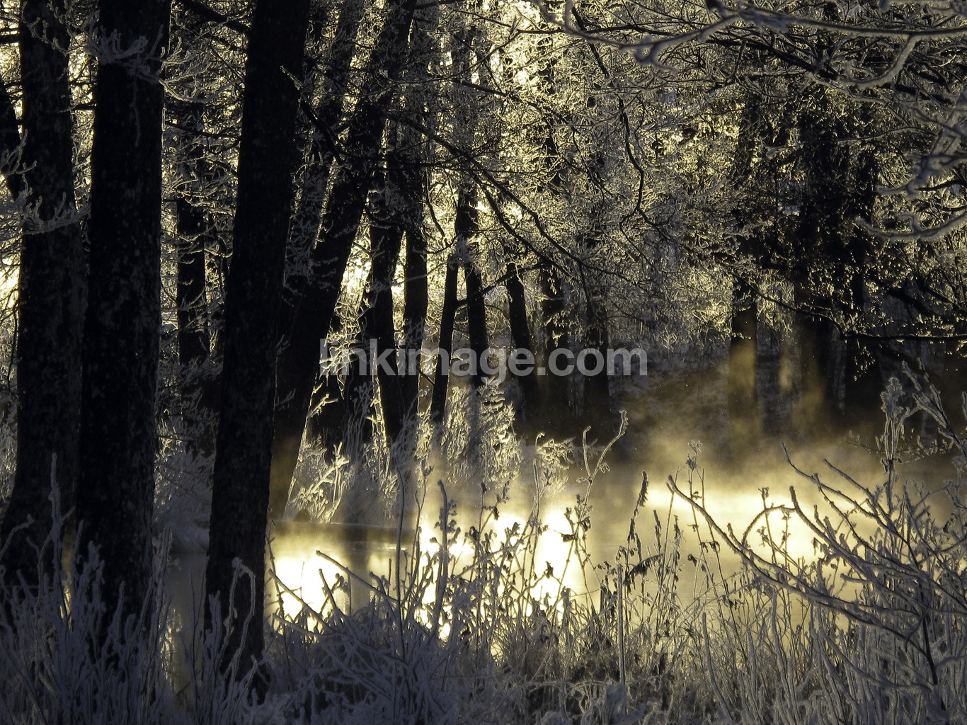 - forest, water, light, winter, stream, river, fog, cool, mystery, tale, rime, frost, sun, dawn, morning, religion, nature, snow