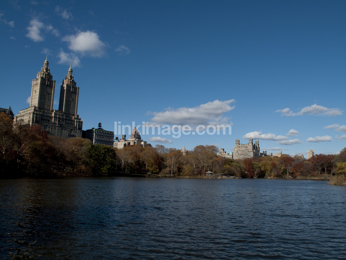 fall, new, york, central, park, leaf, tree, buildings, city, sky, lake, water, cloud