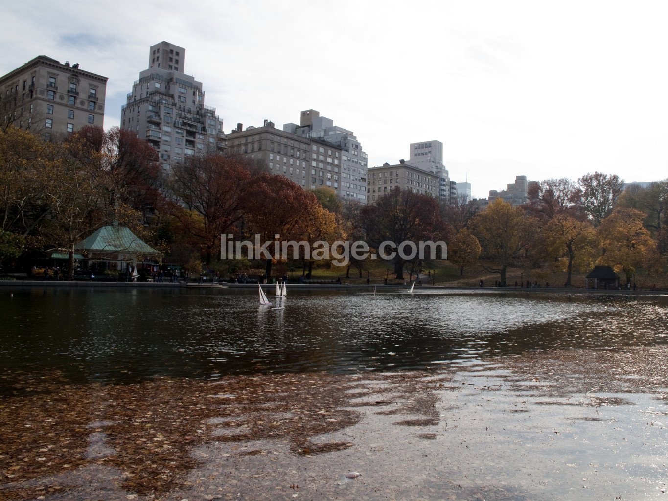 fall, new, york, water, lake, central, park, leaf, tree, buildings, city, sky, boats
