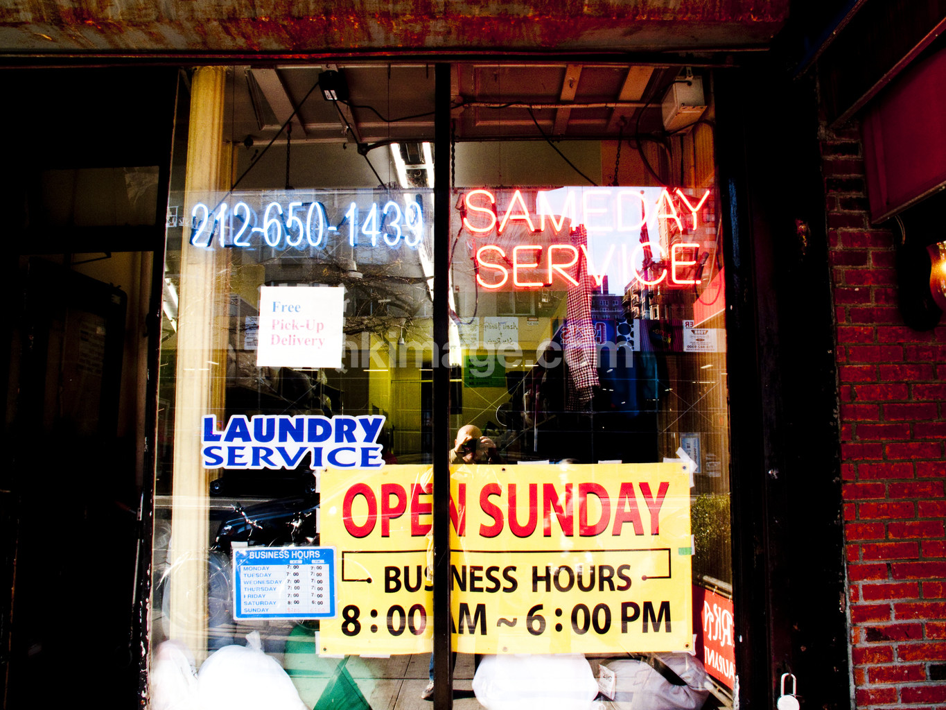 - wash, laundry, dry cleaning, clothes, textile, storefront, neon signs, neon sign, window, store, trade, business