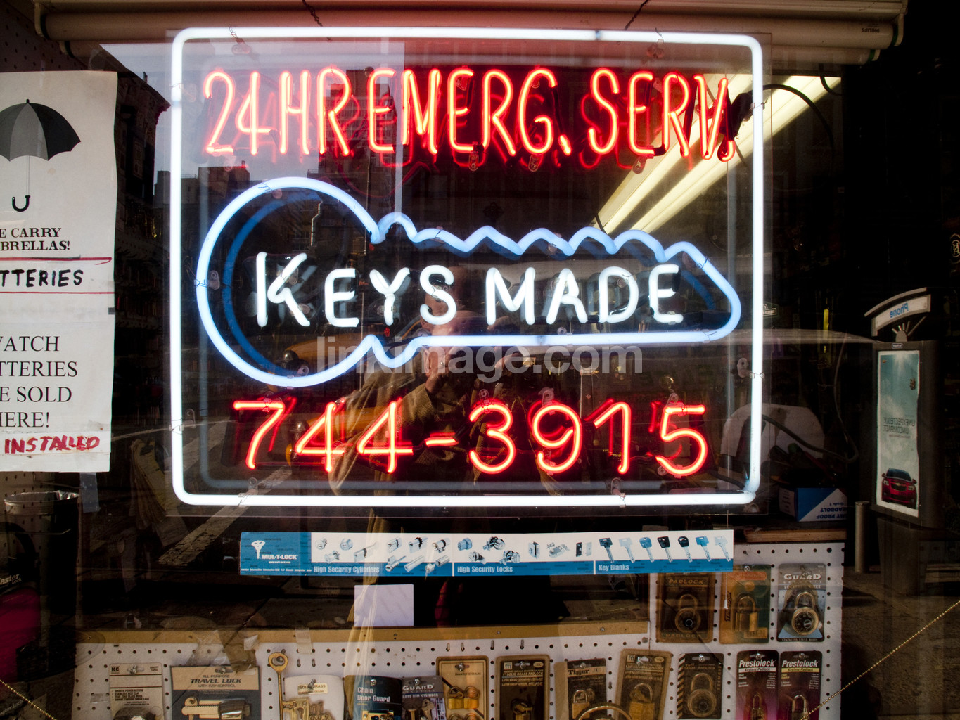 - day, 24, hours, distress, key, locksmith, copying, key service, lock, storefront, phone, number, neon sign