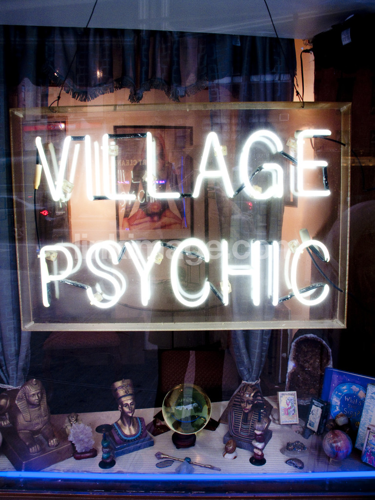 - neon sign, neon, text, sign, statuettes, spådam, future, magic, spåkula, storefront