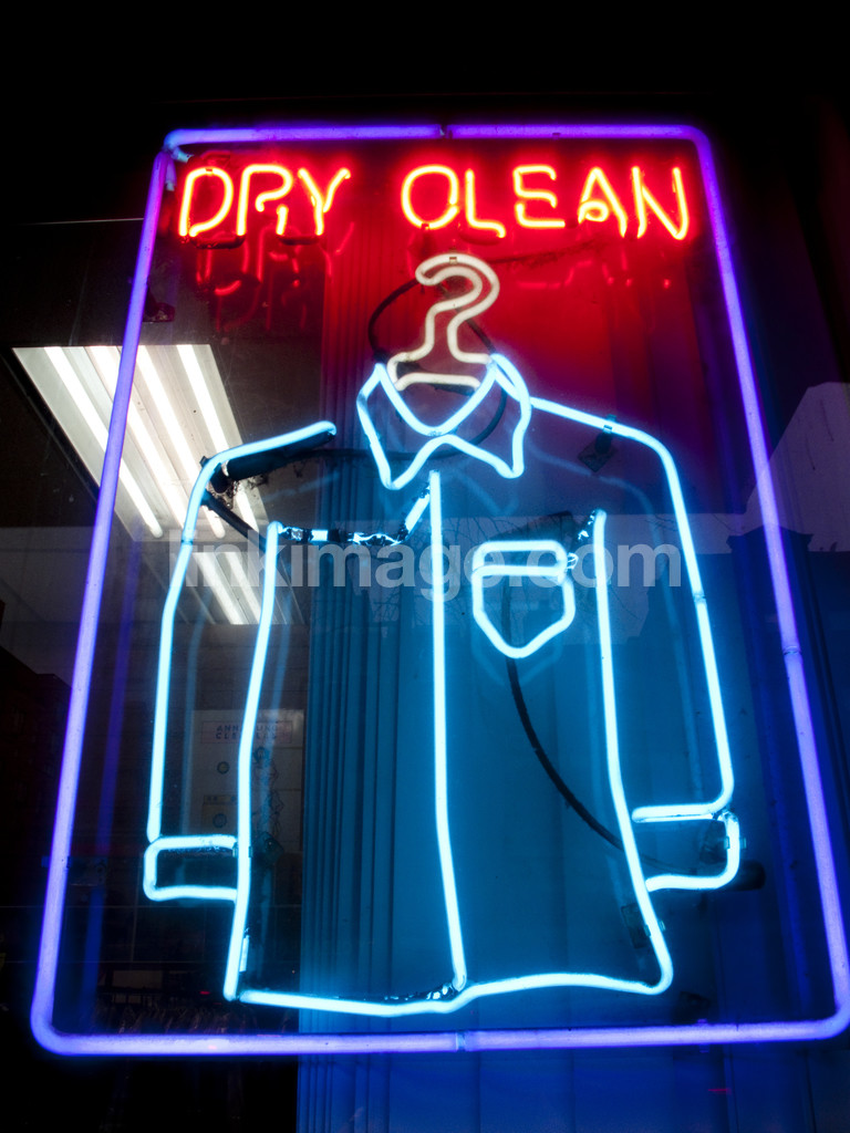 - neon sign, sign, neon, dry cleaning, wash, shirt, storefront, window, fluorescent