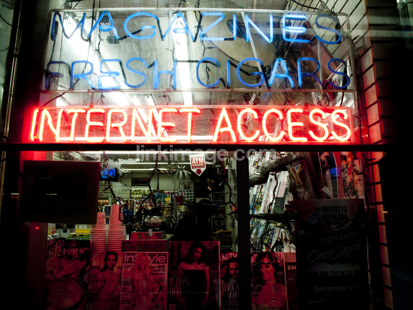 neon, neon sign, business, kiosk, store, papers, sales, cigars, internet cafe, red, light, lights, urban, night