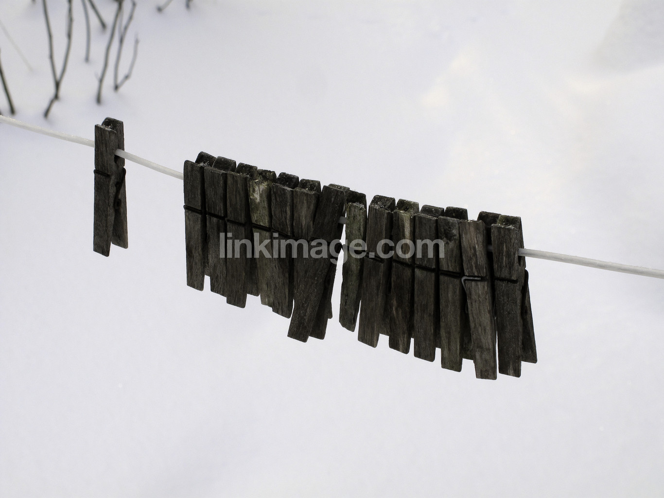 - clothespins, washing line, wash, dry, winter, group, left-, alone, outside, snow, line, garden