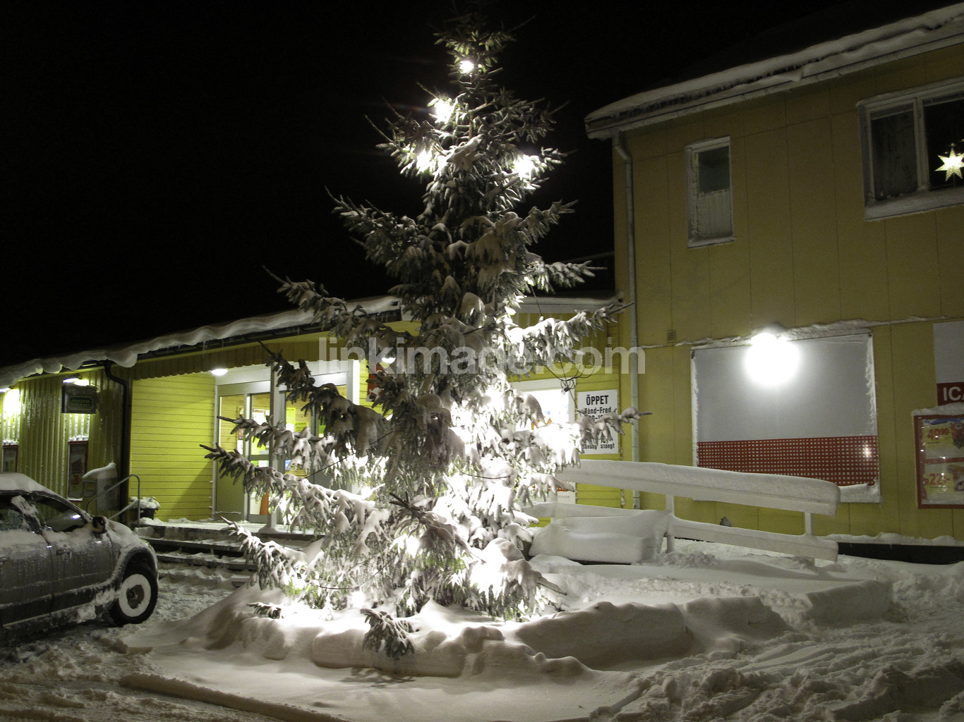 - business, country, country built, winter, snow, evening, christmas tree, july, feast, tradition, supermarket, act, provincial, parking, lamp, lighting