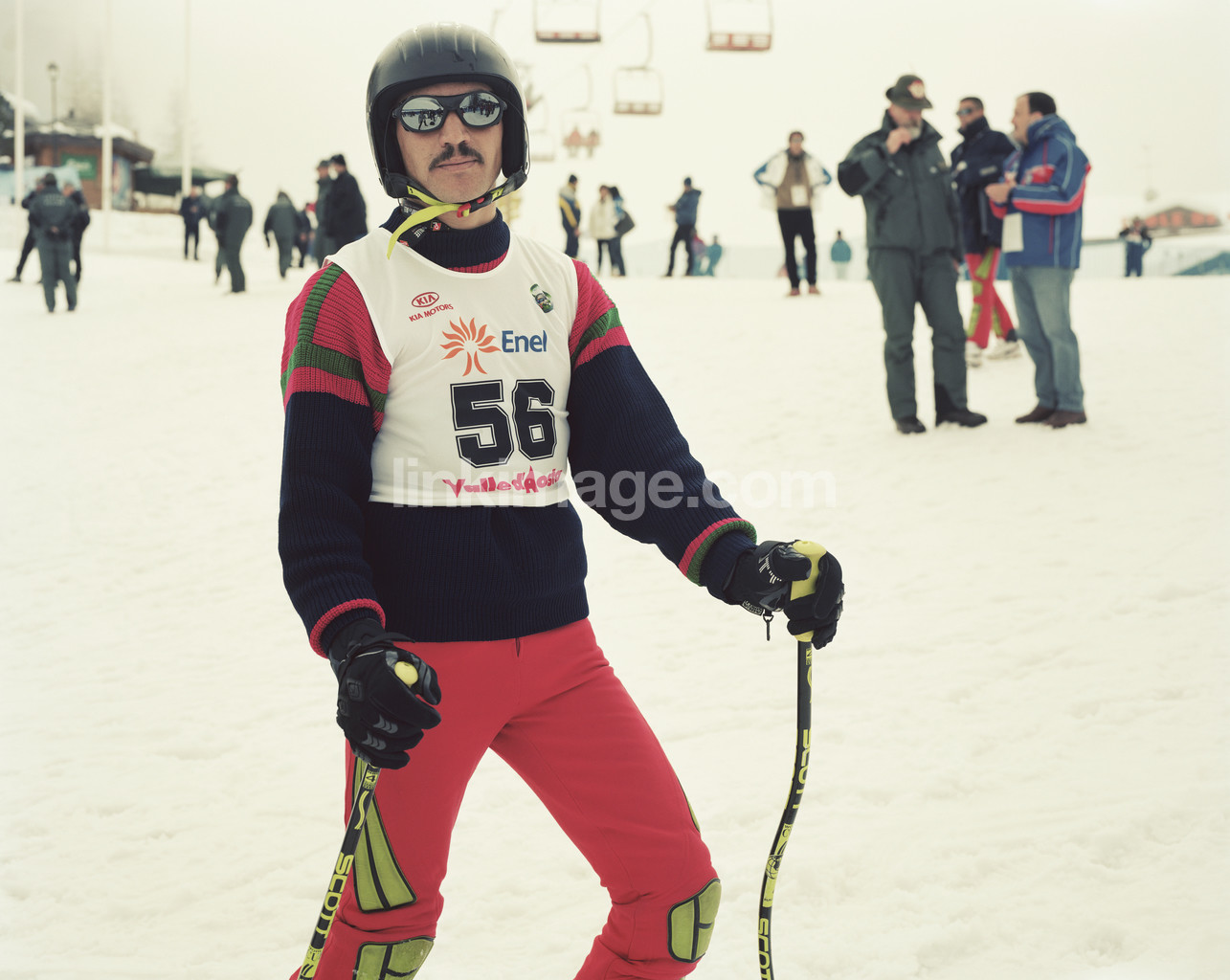 portrait, pose, slalom, retro, helmet, sports, ski slope, race, challenge, sunglasses, bib, mustache, snow