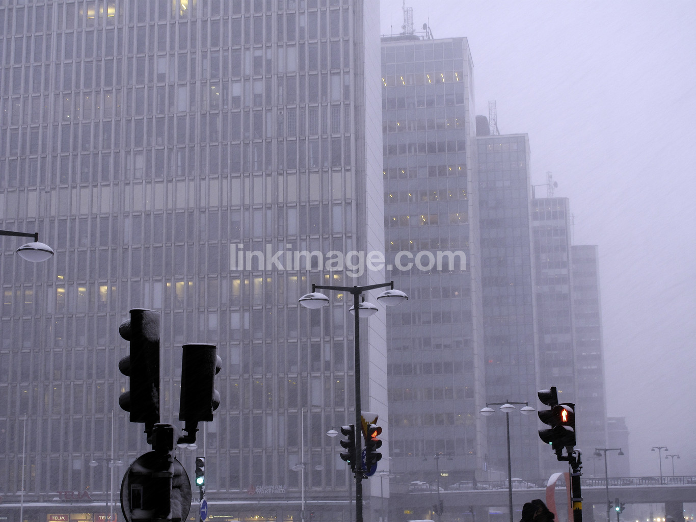 - city, rise, skyscrapers, haymarket, hötorgsskraporna, rows, row, lined, weather, winter, overcast, traffic lights, office, work, snowstorms, bleak, haze