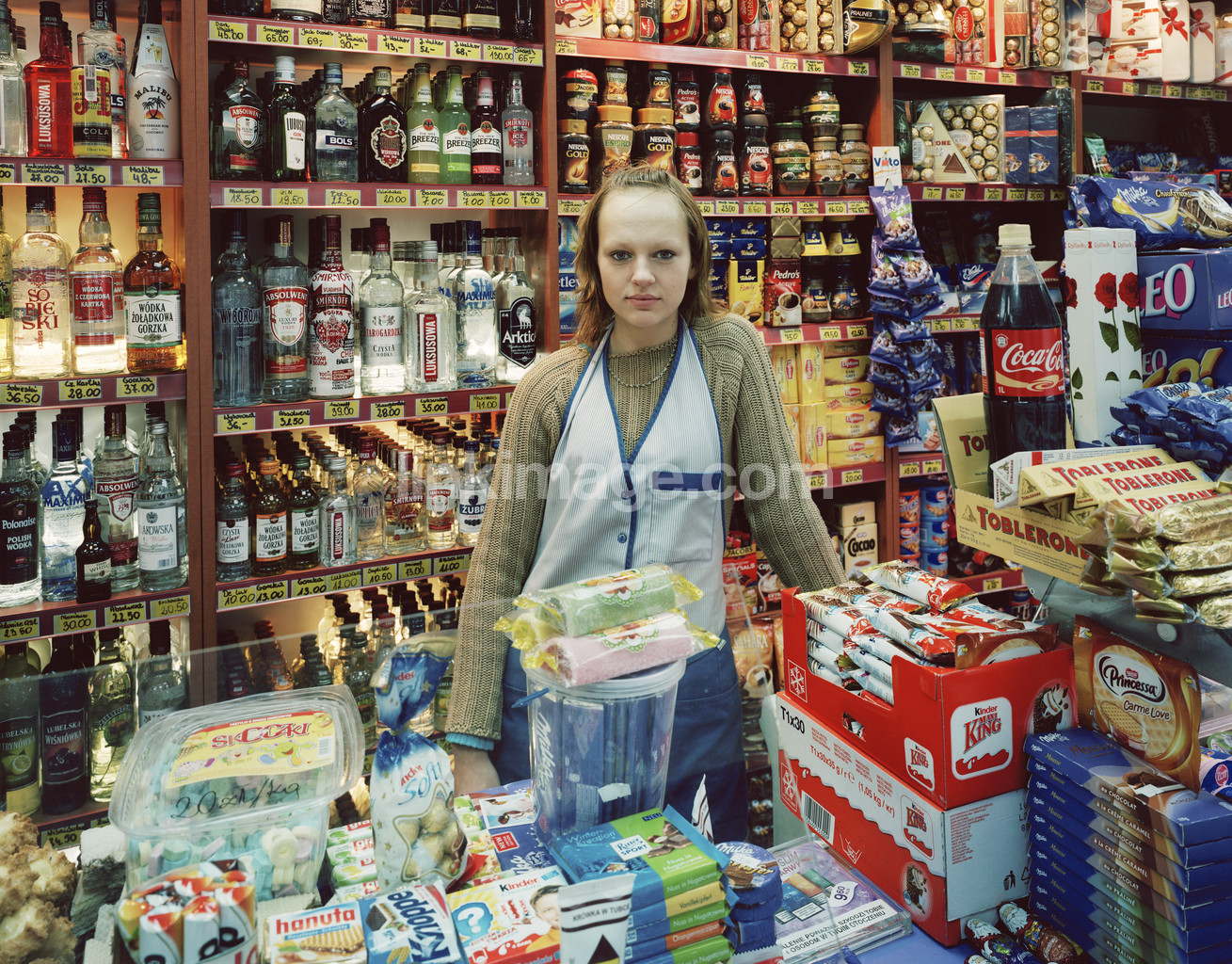 - coil, kiosk, liquor, candy, food, drinking, chocolate, business, female, girl, vendor, shop assistant, dinnerware