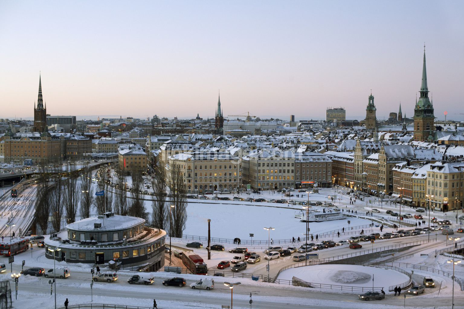 - spot, stockholm, lock, view, views, street, road, cars, traffic, old, standard, winter, snow, sunset, house, roundabout, cold