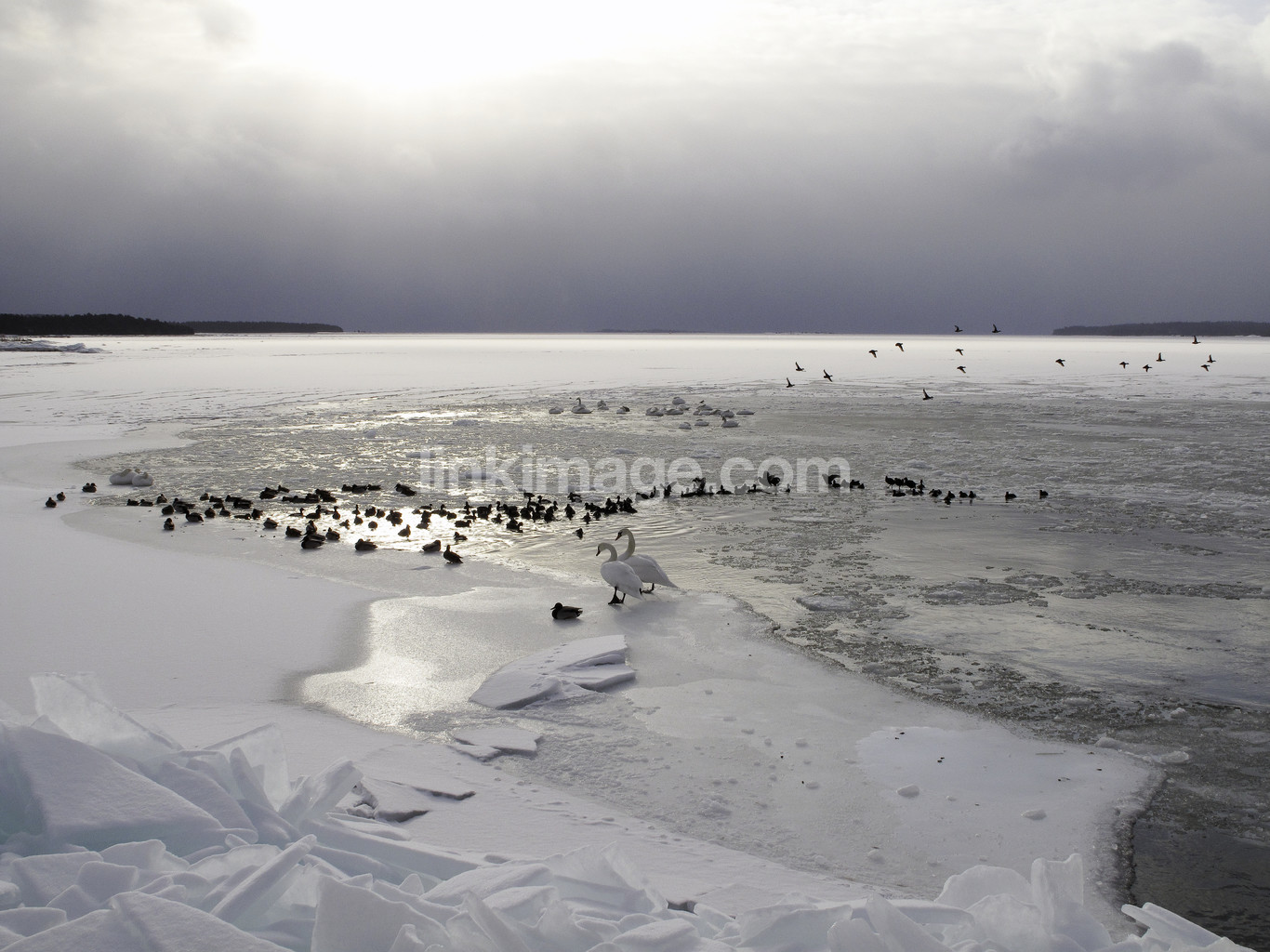 winter, ice, snow, coast, sea, cool, weather, light, view, spot, birds, winter birds, horizon, water