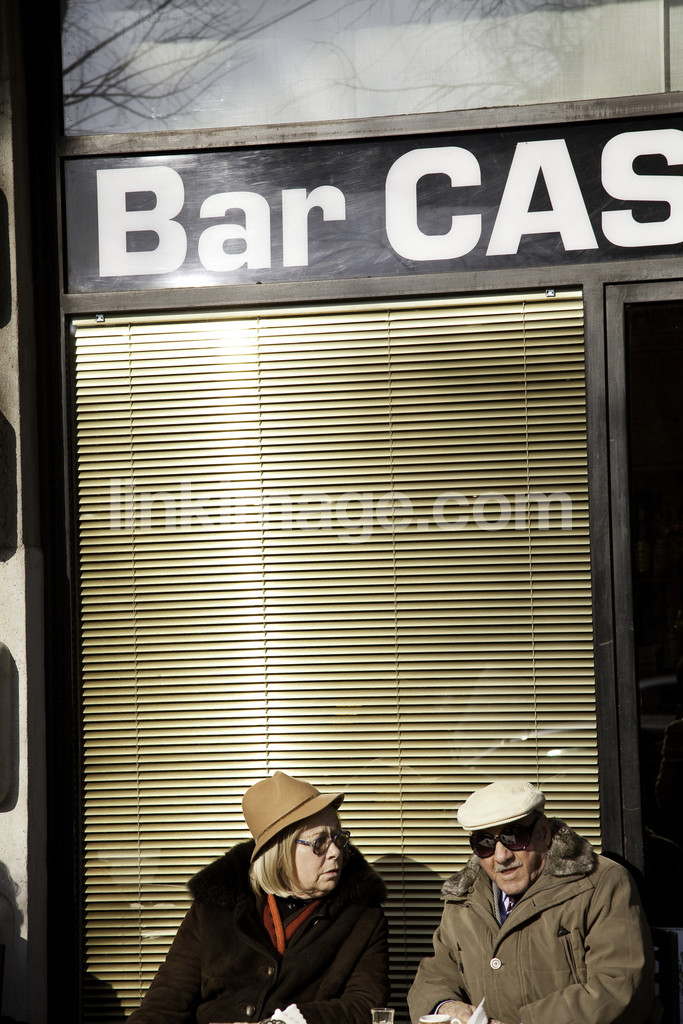spring, sun, bar, couple, older, pensioner, female, uncle, male, aunt, blind