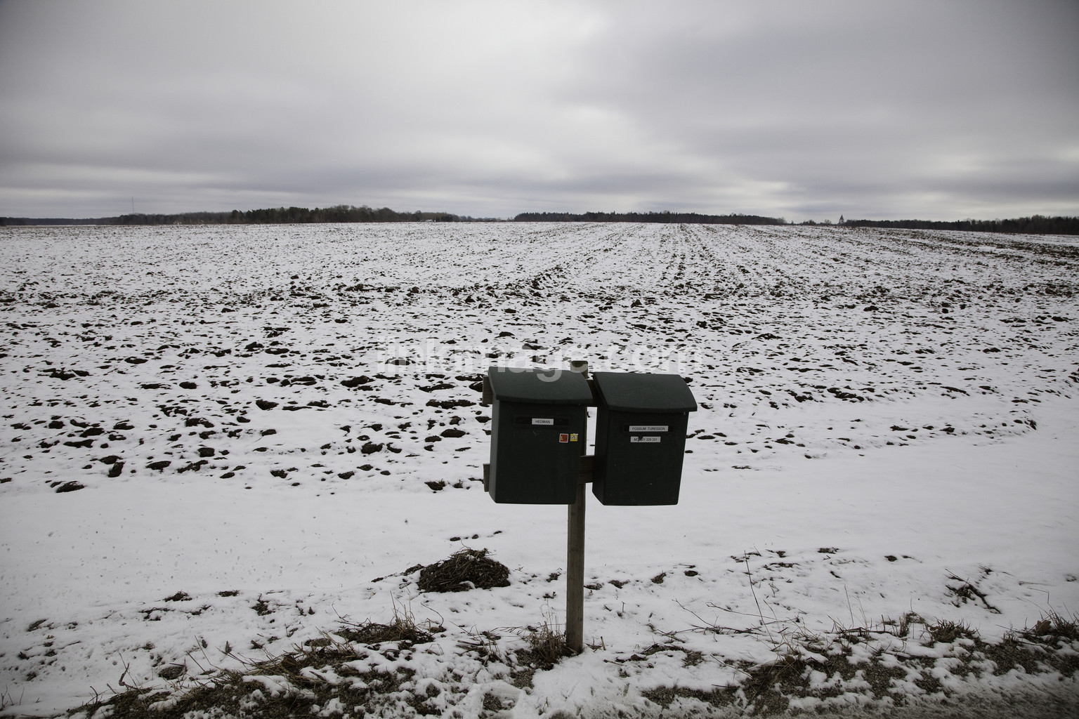 mailboxes, two, spot, view, snow, spring, late winter, graphic, mailbox, mail, go, horizon
