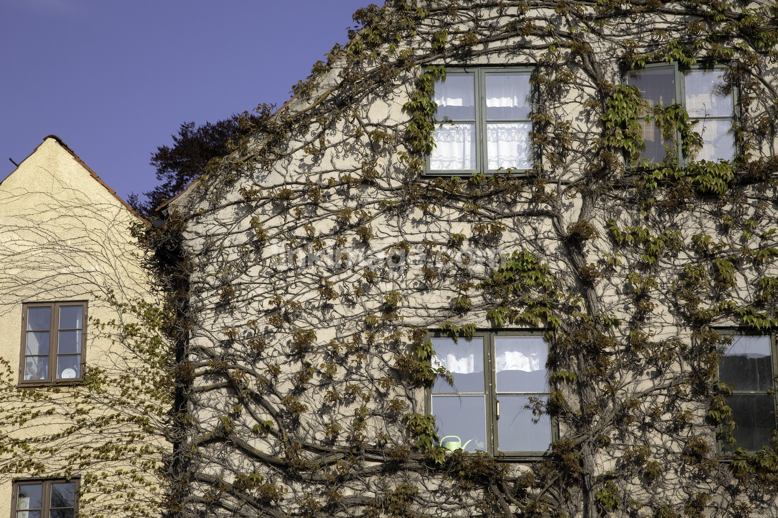 - property, apartment building, house, villa, end, architecture, plant, grow, force, rådhusvin, window, vigor;, time, old, unknown
