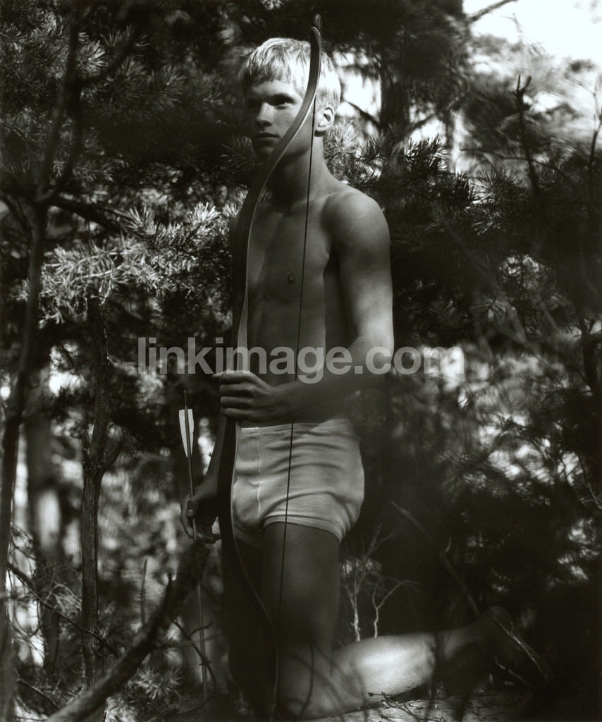male, forrest, bend, guy, arrow, looking, blonde, is, pine, dg041, sitting, on, knee, bow, arc