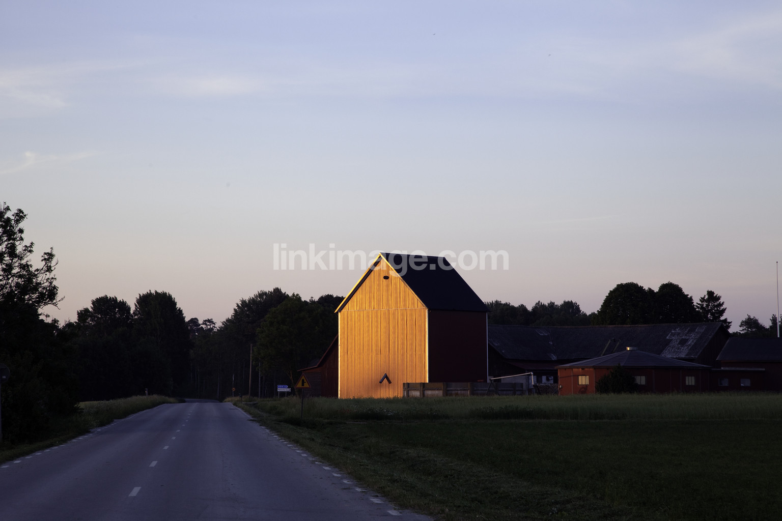 - gotland, country, country built, barn, farmhouse, architecture, colors, red, light, road, evening, spot, dusk