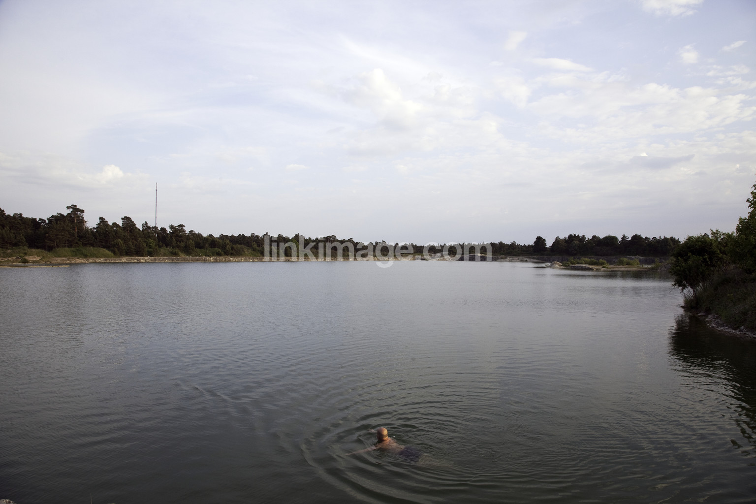 - swim, summer, male, lagoon, limestone quarry, alone, spot, view