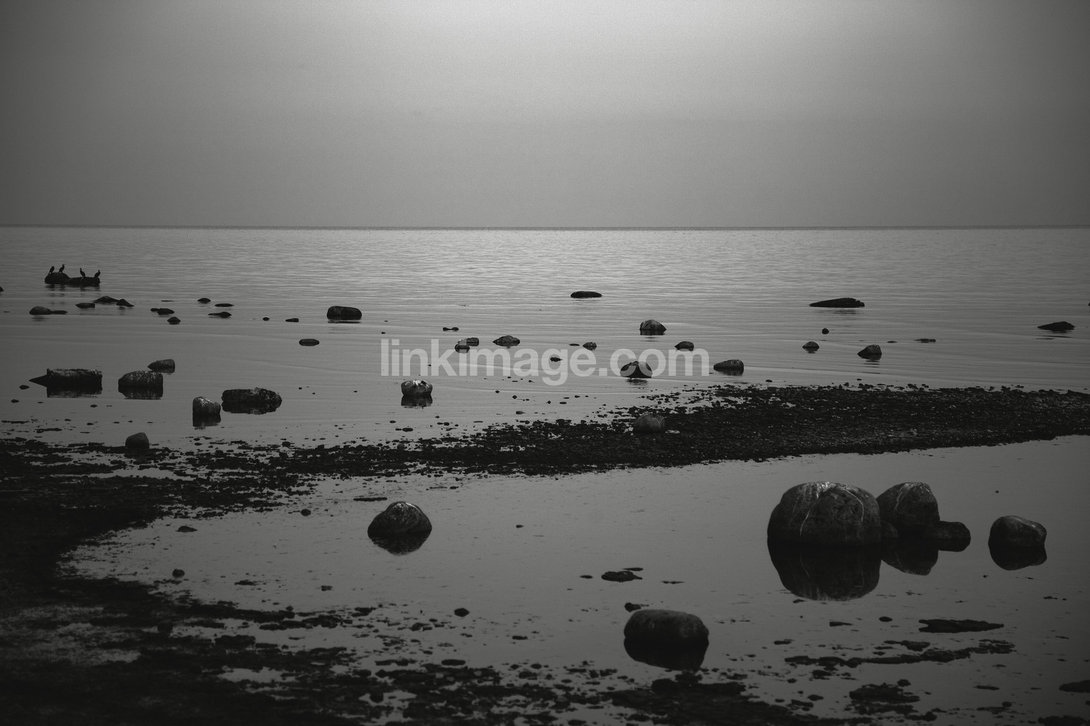 sea, water, stones, still, silent, birds, coast, mood, horizon, light, summer
