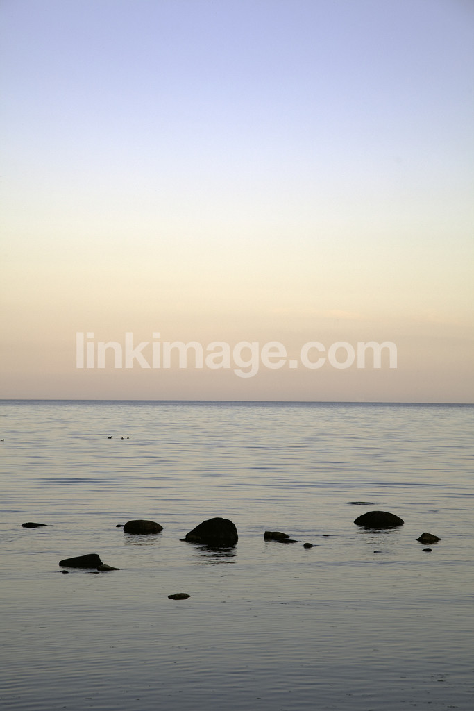gotland, evening, evening light, sea, water, still, stones, light, horizon, silence, nature