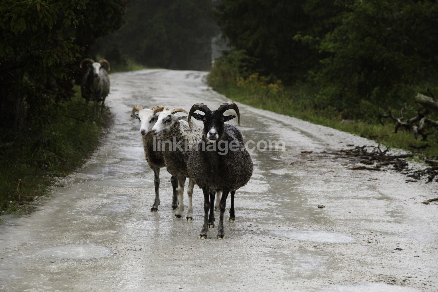 - may, lamb, gotland sheep, road, gravel road, rain, gaze