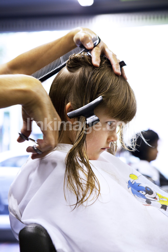 - girl, children, hairdresser, cut, hairstyle, clamp, hold, close, concentrated, profession