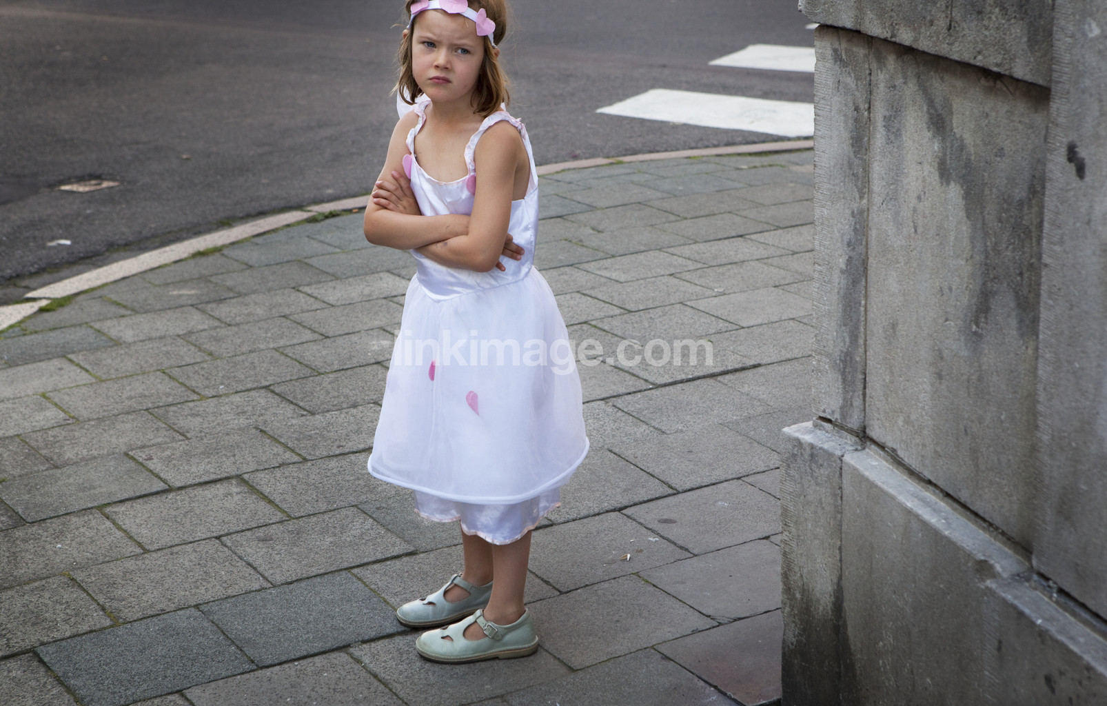 girl, my, acid, waiting, dress, dressed, white, summer, street, pedestrian crossing, traffic, children