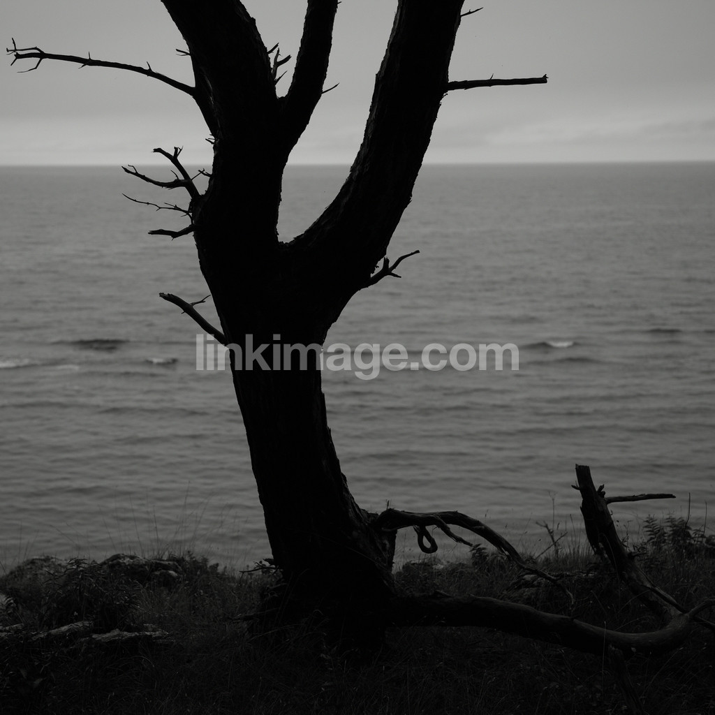 gotland, furillen, tree, coast, forest, sea, graphic, still, silent, horizon, trunk, black, unknown