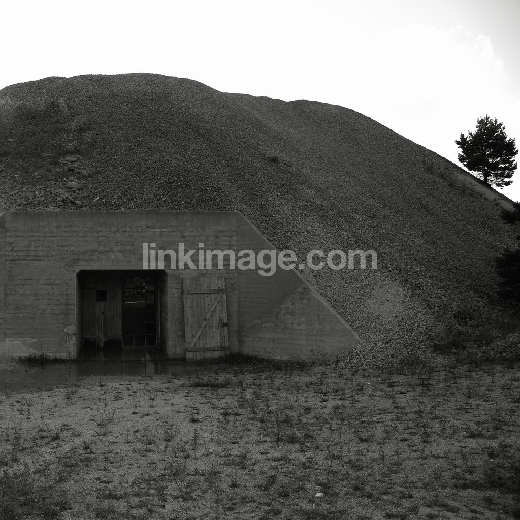 view, spot, gotland, furillen, gravel, heap, door, military, shelters, secret, tree, pine, limestone, limestone quarry