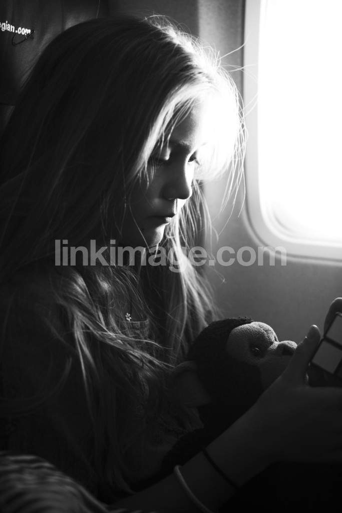 - holiday, black and white, black, white, girl, portrait, monkey, cuddly toys, aircraft