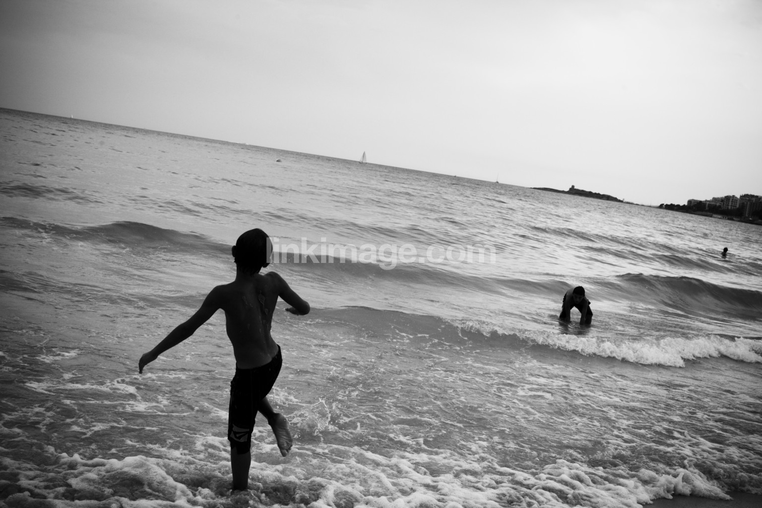 - holiday, he, waves, shore, black and white, black, white, girls, girl, swim